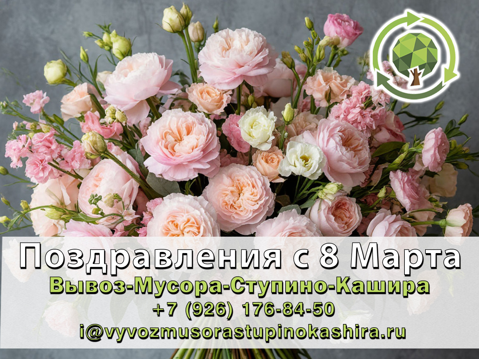 Коллектив компании «ВывозМусораСтупиноКашира» от всей души поздравляет всех женщин — наших клиентов, партнеров, коллег и просто прекрасных жительниц Ступино, Каширы и всего южного Подмосковья!